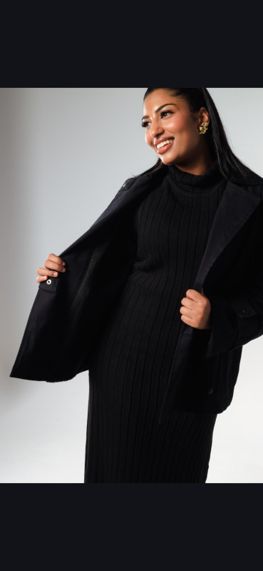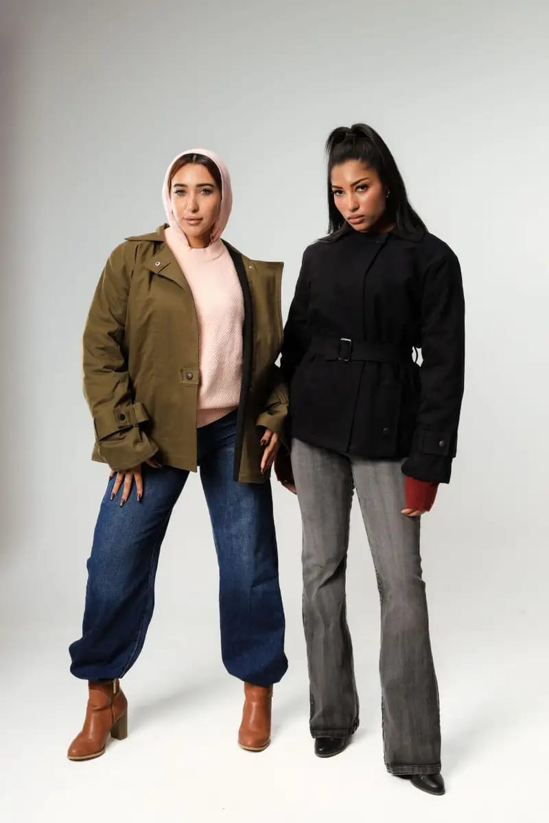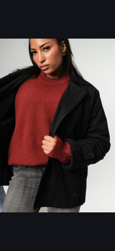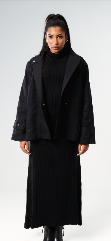 Bouclé Faux Trench-Jacket - Black