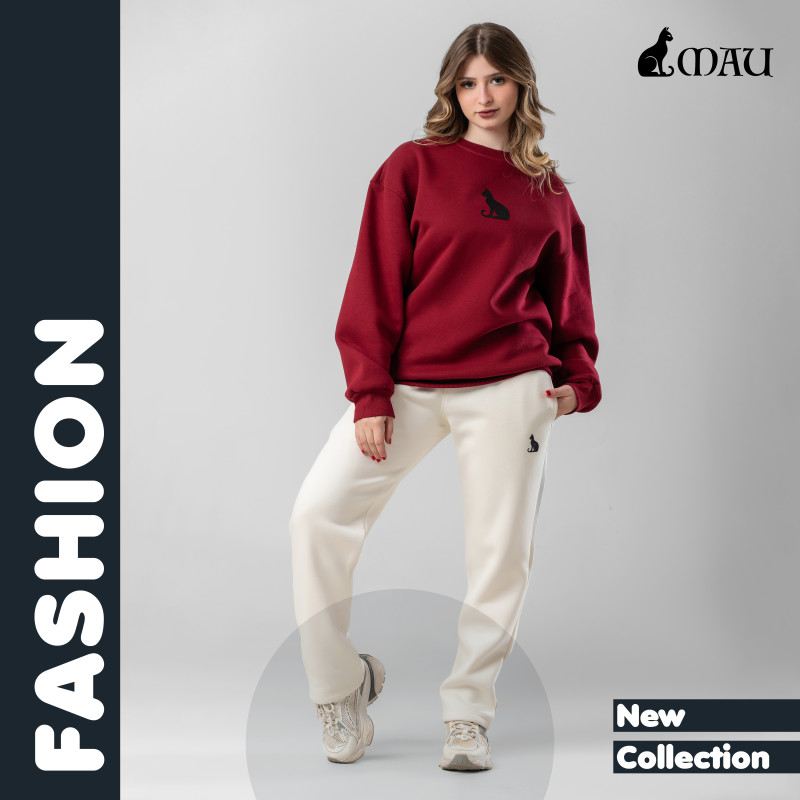 سويت شيرت بورجندي ميلتون قطن ١٠٠% ممشط كومباكت اسفنجي معالج ضد الوبرة والإنكماش