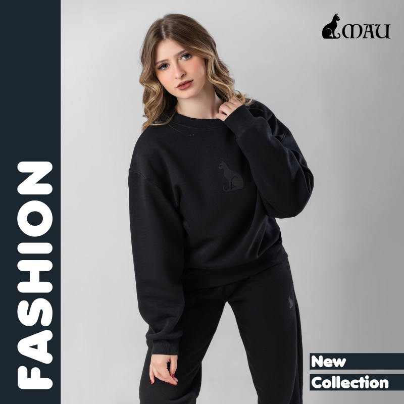 سويت شيرت أسود ميلتون قطن ١٠٠% ممشط كومباكت اسفنجي معالج ضد الوبرة والإنكماش